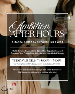 Join us on Tuesday, June 24th from 5:30 – 7:30 PM at Carr Winery in Santa Barbara for a networking event like no other! Build genuine connections, spark new opportunities, and empower your professional journey with like-minded women.