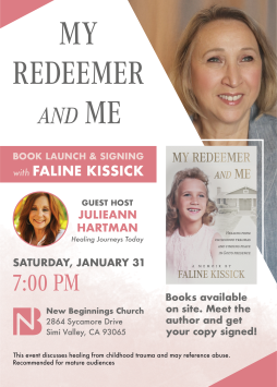 Simi Valley author Faline Kissick celebrates the release of My Redeemer and Me, a faith-centered memoir about healing from childhood trauma and finding peace in God’s presence. Guest host Julieann Hartman (Healing Journeys Today). Books available on site, with signing and light refreshments to follow. Content note: discussion of childhood trauma and may reference abuse. Recommended for mature audiences. RSVP at facebook.com/falinekissick
