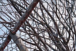 In works like Fences and Trees and Sprouting Seedbomb, barriers divide spaces, block visibility, and keep people separate from one another, but over time, they also provide a place for plants to grow and for birds to roost. In early works, scenes from community work, such as More Filled Seats Magnify the Message, grew from rallies and community-building practices, while State Attorney’s Public Meeting Notes emerged from the workings of government. Krashes’ work highlights how a community evolves, and the people, voices, and actions over time that help shape it.