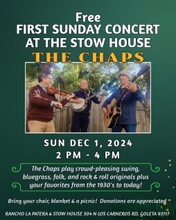 Join the Goleta Valley Historical Society for our free First Sunday Concert as we once again welcome The Chaps to the Stow House lawn!