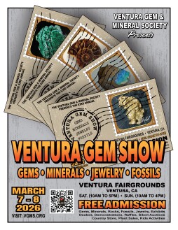 Gems, minerals, jewelry & fossils are on display at the 63rd annual Ventura Gem Show, which includes children's activities, making it fun for the entire family. Free teacher resources, displays, jewelry-making demonstrations, gold-panning activity, 15 dealers, raffle, silent auctions, and more. Admission is free (note: the Fairgrounds charges a parking fee). Benefits the Ventura Gem & Mineral Society, a nonprofit educational organization encouraging interest in minerals, fossils, lapidary & jewelry arts via monthly lectures & workshops, a kids' program, a college scholarship, & presentations to schools throughout Ventura County.