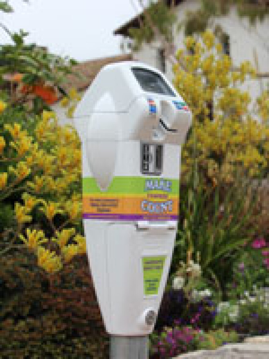 The “Make Change Count” program in downtown San Luis Obispo uses specially marked parking meters as easy ways for people to make contributions to help those in need. The idea is that people put money in the machines if they want to help, rather than giving it to panhandlers.