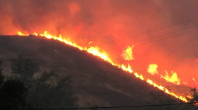 Elizabeth Hatten, who was camping at El Captain State Beach before she and her husband were evacuated, says the flames were scary. Gail Robinson, with the Red Cross, says about 40 people evacuated from campgrounds spent the night at a shelter at the Wake Center in Goleta.