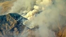 However, firefighters were able to protect the structures, and the fire moved away from the community. Only about 40 firefighters are still on scene doing mopup work. Firefighters say the blaze was triggered by a vehicle fire.