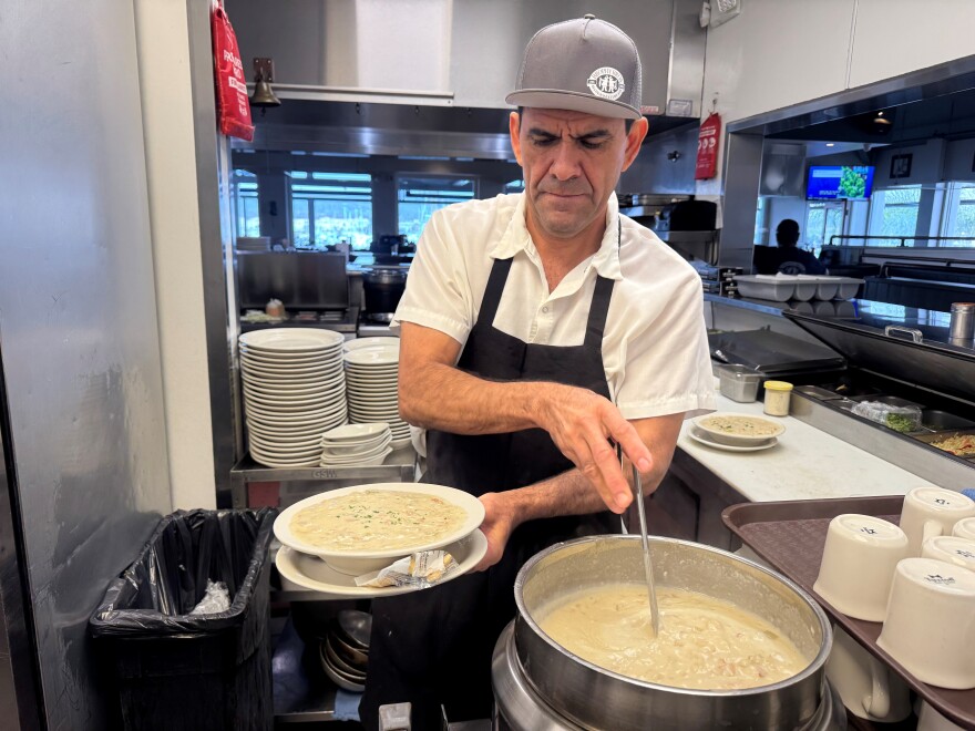 Of the enduring appeal of clam chowder, he said, "I think it goes back to the family recipe we've had since we opened the doors in 1986. The recipe does come from the East Coast. The family's origins are from out there. So it's an East Coast style chowder, which is not really common to find out here in California."